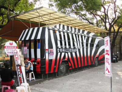 長期辦理愛心捐血活動的金聲廣播電台-金聲同心會,除了捐贈了第一部「金聲同心號捐血車」,每天固定在三民公園服務捐血人,在2003年再捐款整修原三多號巡迴捐血車體,是為「金聲同心二號捐血車」。由於車齡逾20年不宜遠途,為使該車能發揮最大功能,所以再度發揮慈悲心,於2008年3月2日加以整修美化成為固定捐血車,汰舊換新來取代原先停放在鳳山體育場內,長期歷經風吹雨打,車體老舊的「仁愛號」定點捐血車,也就是這部紅斑馬彩繪的鳳山金聲號捐血車(金聲同心三號)。