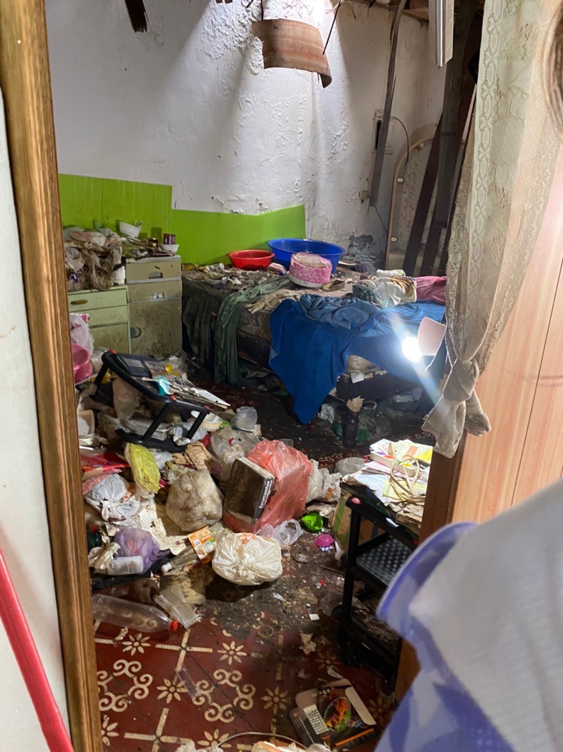 只能獨居在朋友生前借住的房子裡不至於露宿街頭,但房子年久失修。原先睡覺的地方漏水很嚴重,加上阿嬤囤積了20多年未整理的物品導致環境堪憂。